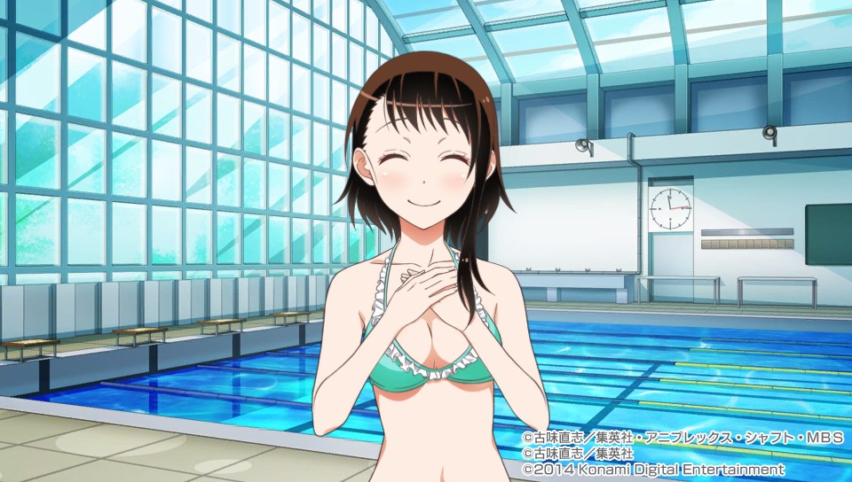 La joven Kosaki tiende a ser la enamorada oculta del protagonista Raku, de lo que si ella estuviese en bikini que muestra en la segunda temporada en la playa, anteriormente antes de volver a encontrarse con las demás chicas, es seguro que Raku le hubiera confesado su amor hacia ella sin dudarlo ni por un milésimo de segundos. Ella abarca en su traje de baño dos porciones de baño muy llamativas que conllevan como ornamentos particular, un flequillo de color rosa que le da ese pequeño roce de enigma de acuerdo a lo que se encuentra por debajo de su pansu flexibles. A parte, el sujetador deja ver excelentemente la figura original de sus pechos, siendo sólido y sensual.