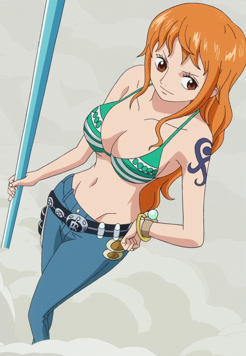 La chica más sexy en bikini obvio esta, dejándonos una gran proporción de voluptuosos oppais, figura esbelta en ese pequeño y sexy traje de baño ajustado a su cuerpo de manera sensual y embrujadora casi siendo considerada como un diosa de la sensualidad por muchos, no cabe resaltar que su hermoso cuerpo como rostro son atrayentes de un sinnúmero de personas cautivadas por su belleza inquebrantable en especial uno de sus compañeros el cocinero de los piratas del sombrero de paja, »Sanji Vismoke», el cual a menudo siempre intenta cortejarla o seducirla con la intención de acciones de llegar a algo quien siempre falla ante la determinación inquebrantable de Nami.