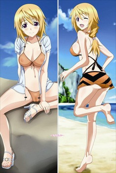 La primer dulce chica es Charlotte Dunois, con un par de pechugonas cubiertas en el sexy sujetador de bikini, de color dorado que atrae el entretenimiento sin fin. Ella es uno de las personajes principales de la serie IS: Infinite Stratos, siendo ella de personalidad tímida y reservada, sin embargo no le obstaculiza de sentir atraída por Ichika Orimura. Esta y su operación de espiar al protagonista fallaron, pero, él la liberó de culpa alguna y posiblemente fue por ese atractivo cuerpo que ella porta.