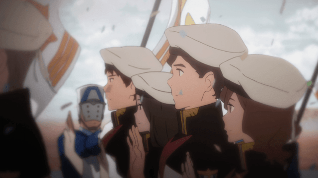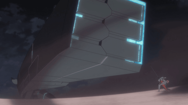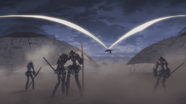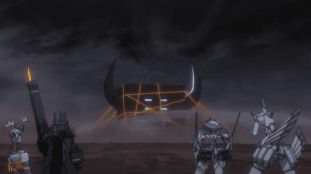 El líder del escuadrón 26 se queda sin combustible estando a punto de ser aplastado por Gutemberg, es salvado por la unidad Argentea, el equipo 13 atacan en formación de batalla grupal para abrir una abertura a Strelizia, ya que tiene una poderosa lanza en forma de proyectil, la cual es la única capaz de atravesar la defensa de Gutemberg, los demás atacan en combinación inmovilizando a la gran bestia, Strelizia ve la oportunidad y atraviesa parte de la coraza de la bestia.