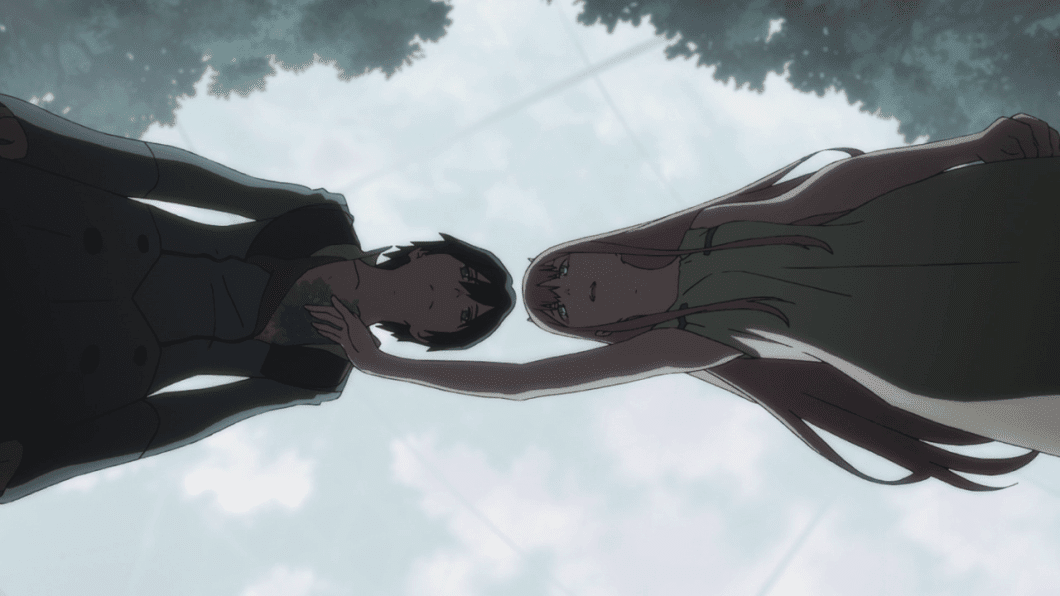 Posteriormente al otro día, Zero Two se observa viendo la lluvia caer, lo que nunca había visto, Hiro la observa, Zero Two se percata de su tumor, advirtiendo a él de que es su oportunidad de retirarse ya que nadie ha sobrevivido más de 3 veces en pilotear Strelizia con Zero Two, Hiro con la reafirmación y determinación suficiente, lo cual Zero Two sonríe y gira a su alrededor felizmente sabiendo que Hiro podría perecer pero que seguirá por el momento con Zero Two.