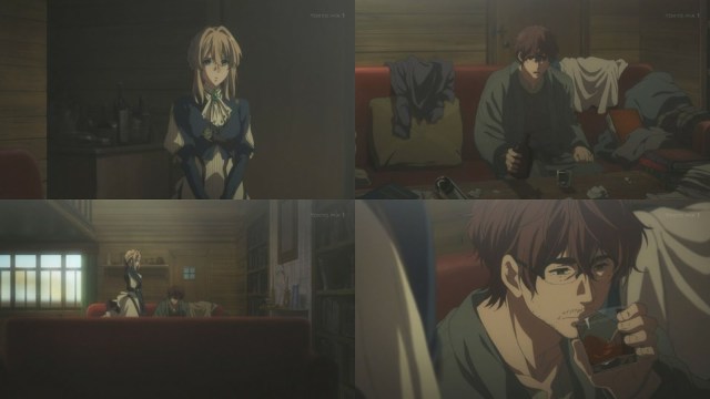 Hodgins conversa con Cattleya sobre los pedidos que hacen con mucha frecuencia en especial la mayoría dirigidas a Violet pareciera como si ocultase algo últimamente. Violet recibe el pedido de ir a redactar para un gran escritor de obras teatrales, por lo que al llegar el cliente observa que es una niña, al pedirle que escriba por él, lo que el argumento, cuando en depresión decide beber licor, Violet no acepta ello por lo que si el bebe no podrá ella trabajar perfectamente, este señor piensa posponerlo para el próximo día, sin embargo Violet no acepta cuando ella decide ayudarle un poco con la limpieza del hogar.