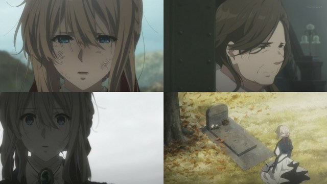 Volviendo a la actualidad Violet llega donde solía vivir el mayor Gilbert, ella pregunta por él en el que en el patio observa ella la tumba de el y cae de rodilla al suelo recordando cuando Gilbert le otorgó el nombre de ella, enseñándole a leer y luego escribir teniendo la disciplina de redactar un informe para el todos los días en aquel entonces, también cuando la llevo a la ciudad y le ofreció comprarle un presente como agradecimiento por todo, ya que quería hacerla sentir feliz y que se sintiera no solo como un a arma si no como una chica que pertenece a la sociedad.