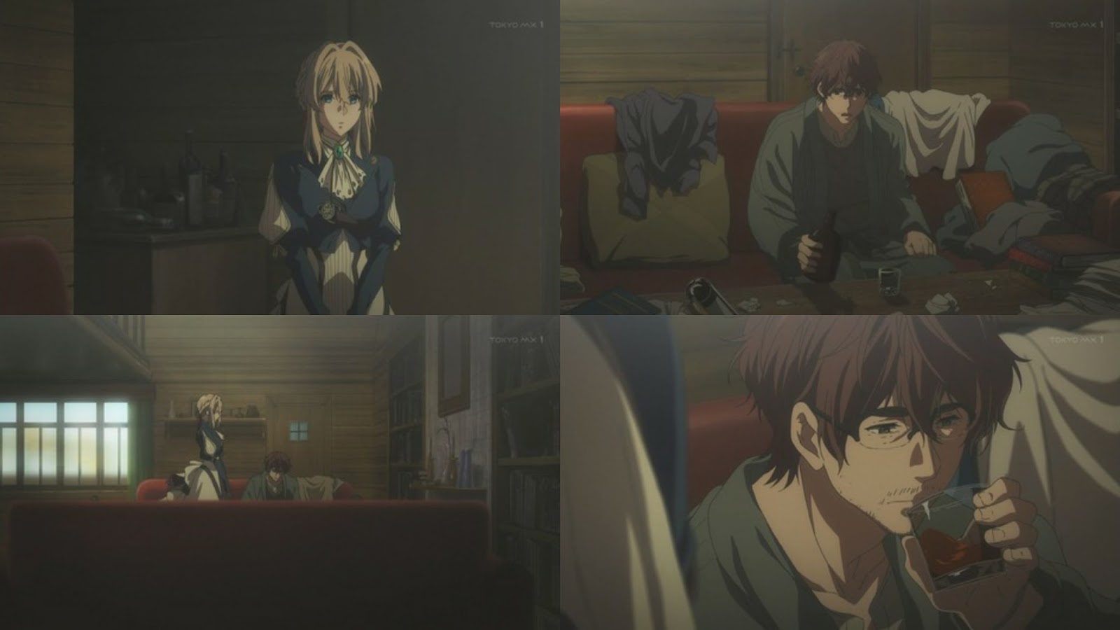 Desde la segunda planta de su hogar observa a Violet desde la ventana, la cual ella utiliza el paraguas contra el sol, esta escena abrió el telón de sus recuerdos más fatídicos, por lo que entra en enojo con Violet queriendo que ella se marche y olvide todo, ella le recuerda sobre la obra que se debería terminar, pero el escritor camina hacia la casa sin hacerle caso, cuando Violet siente ese momento el que le han sucedido caso similares de acuerdo a los sentimientos de las personas, ella toca el tema de que si algún problema que le remuerda la mente le pasa, entonces el escritor se detiene y escucha por lo que Violet le dice de que no es buena en entender los sentimientos de las personas ya que es inexpresiva,en muchas ocasiones, pero se preocupa por aprender de ello que se esfuerza en el diario vivir.