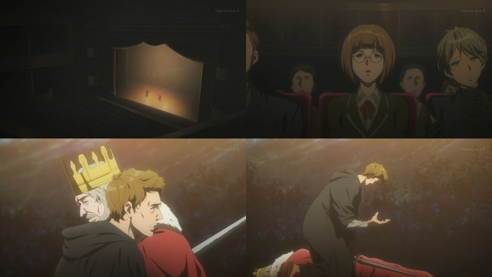 El episodio abre el telón de una obra teatral en el que el rey es traicionado por uno de sus súbditos el cual es asesinado, este subalterno el cual se arrepiente de haber cometido este crimen, tendrá que cargar con ese pecado por la eternidad, al final de la obra los espectadores quedan asombrados con tales escenas dramáticas teatrales. Luego Erica e Iris recomiendan a Violet visitar las obras teatrales en las que ellas van en ocasiones, ya que son muy populares y buenas, Violet lo considera pero ya estaba leyendo la obra en una ilustración escrita.