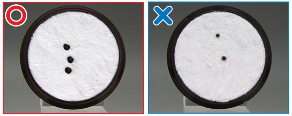 Por último, la base de ambos tiene una textura parecida a una alfombra, pero la base de Good Smile tiene tres puntos grandes para unir la figura, mientras que el bootleg tiene solo dos.