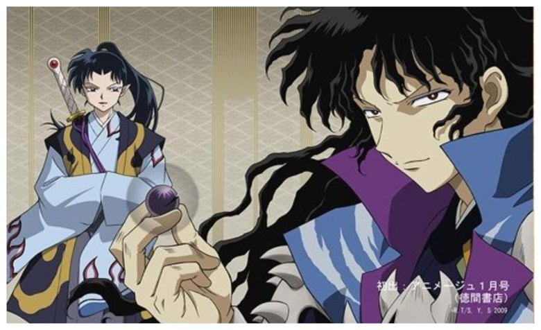 Naraku, el antagonista principal de la serie de InuYasha, este ser siniestro se manifiesta de la unión de varios entes espectrales, fusionados con Onigumo</b>; un famoso criminal el cual fue traicionado por sus subalternos, al final termina bajo el cuidado de Kikyou, con sentimientos por ella, pero al percatarse de que ella solo tenía ojos y su corazón para InuYasha [culpable indirecto del caso], entonces Onigumo sella un pacto con varios demonios para desunir la pareja, de ese modo formar al engendro llamado Naraku; un muy terrible ser polifacético que inspira terror en las masas, mediante la manipulación, que en algunas ocasiones se oculta con una máscara de babuino, con la intención de apoderarse del planeta con la ayuda de las Perlas de Shikon.