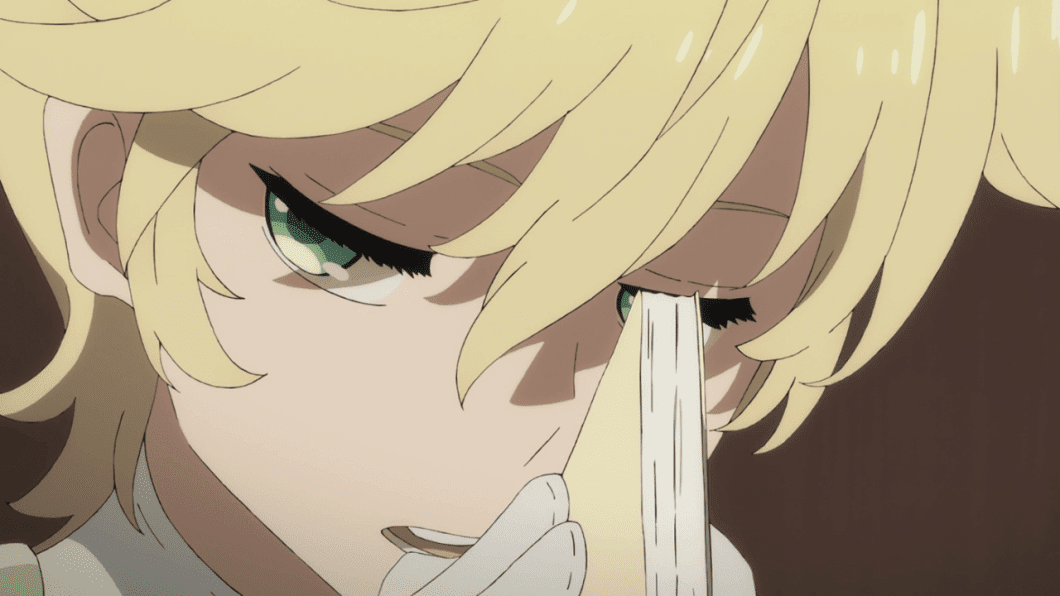 La princesa emite un sonido agudo muy fuerte que distorsiona el cerebro del oponente, uno de la APE actúa precipitadamente sacando sus armas e intenta atacar a la princesa, el otro le advierte que se detenga. Sin embargo este es eliminado por extensiones que surgen de la princesa atravesándolo, luego 2 grandes bestias klaxosaurios con forma de serpientes acaban con el otro restante de la APE al igual que los otros escoltas humanos que les acompañaban. La princesa Klaxosaurio baja de su trono quitándole la máscara a uno de la APE, pensando en la patética imitación humana que ella ve. De vuelta a la plantación 13, Mitsuru está solo en el invernadero pensando, luego en el salón el quipo 13 conversan sobre lo mencionado por Kokoro, en cuanto a los bebés, y todo lo demás.