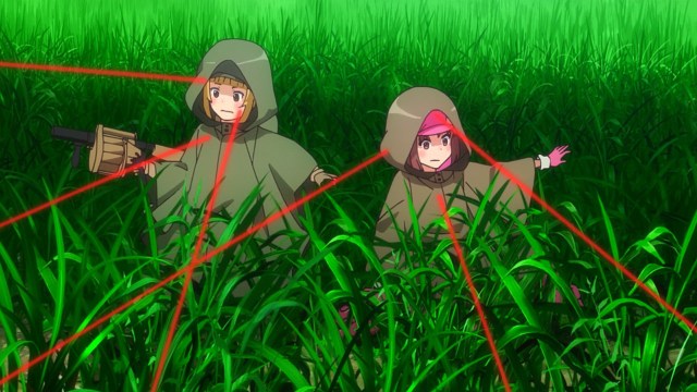 Por lo que deduce al sonido de ellos que todos se escuchan hacia la misma dirección de forma aleatoria, siendo una trampa para que ellas piensan que luchan entre ellos, Llenn avanza mientras que Fuka se mantiene en el mismo sitio, el enemigo avanza acercándose a Llenn lo cual está ordena a su compañera disparar para distraerlos pero ellos se percatan de Llenn, sin embargo ellos anticipan disparándoles con su ametralladora, Llenn ordena a Fuka que avance pero esta se ve acorralada por el enemigo con sus infrarrojos apuntándole a ella, no quedándole de otra que no avanzar y ocultarse, Llenn Continua sola ordenándole a Fuka disparar desde su distanciadas cortinas de humo rosa, donde Llenn podrá camuflarse perfectamente con su atuendo rosa.