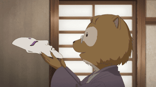 Lo que hace que se sienta curiosidad en el nombre de la chica, luego de una plática sobre Aoi entra en curiosidad por saber el origen de la máscara que porta el Ayakashi lo cual es idéntico a la que portaba el Ayakashi que le ofreció alimento a Aoi cuando era una niña, el noticiero al saber que ella es la nieta de Shiro le crea una gran sorpresa en el. De tal modo que el Ayakashi escritor se emociona por ello recordando a Tsubaki Shiro como un gran héroe oscuro quien luchaba contra el más, lo cual lo inspira para crear un gran artículo, de inmediato corre a hacerlo, Aoi se queda estupefacto al tener poca idea de lo ocurrido, más tarde Ginji hace una supervisión de las visitas últimamente en el restaurante lo cual no han sido muchas.
