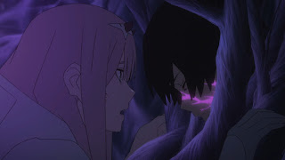 El doctor FranXX le ofrece a los Klaxosaurios su brazo al contener materia y organismos de la princesa Klaxosaurio por lo que se lo arrancan, el Klaxosaurio con forma de víbora se lleva a Zero Two en su boca directamente hacia Hiro, pero no sin mates Zero Two agradecerle al doctor por haberla creado y demás, a pesar de que el doctor cometió muchos peldaños y atrocidades contra ella, aun asi estando Zero Two consciente de todo ello y de inmediato se marcha, el Klaxosaurio víbora abre un gran agujero en el muro donde detrás de ello esta Hiro y la princesa Klaxosaurio, sin embargo la víbora termina echa pedazos por el impacto, Zero Two abre la escotilla del Mecha y encuentra a Hiro medio muerto intentando reanimarlo pero esta desangrado.