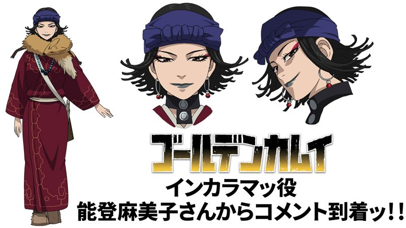 La página oficial del anime que ajusta el manga de Golden Kamuy la cual Satoru Noda ha anunciado mostrando que Mamiko Noto formará parte del elenco del anime de tal forma que será Inkarama, haciendo su aparición en el episodio 12. La web oficial revela la serie anime con tres promociones de video caseros aparte de 12 episodios. La publicación de ello conllevara los cortos de »Golden Doga Gekijo». La serie animada se emitió el 9 de abril.