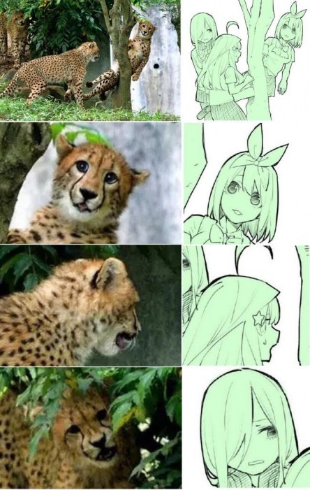 Mientras esperamos la próxima temporada de Go-Tobun no Hanayome. Negi, la autora del manga, publicó un nuevo arte en su twitter, muestra a Yotsuba atrapada en un árbol mientras Itsuki y Miku la observan. El nuevo arte visual de Go-Tobun recrea una escena real con guepardos
