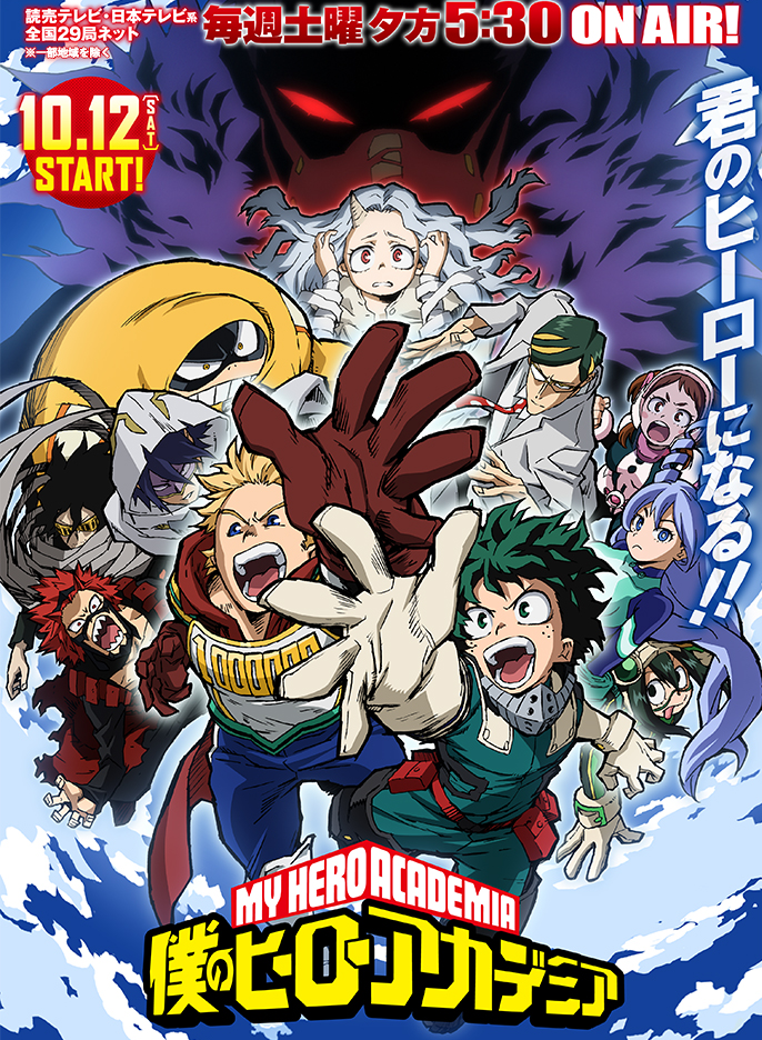 Hoy dio inicio a emitirse en los televisores japoneses este breve video promocional de la cuarta temporada de adaptación a la serie de anime del manga Boku no Hero Academia (My Hero Academy) de Kohei Horikoshi. con su estreno fechado para el 12 de octubre.