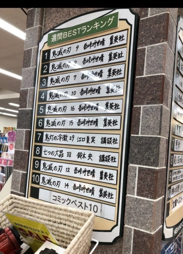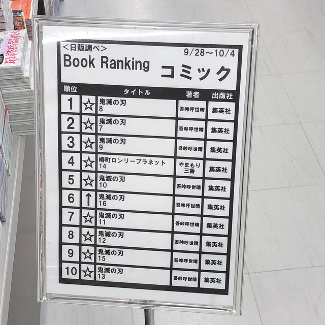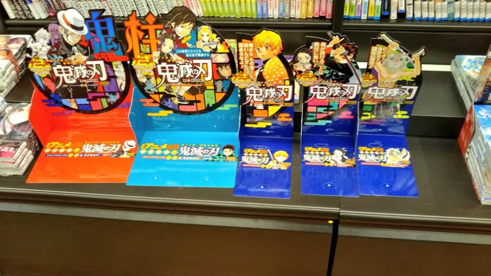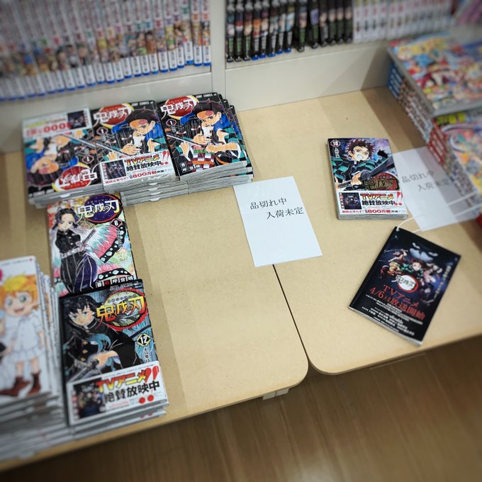 Recientemente lanzado el volumen 17 del manga junto con un libro especial y ambos están agotados en varias tiendas en Japón! Las librerías se están volviendo locas teniendo que sacar advertencias de que se han agotado. Además, algunos libreros ponen filas de los títulos más vendidos y ¿adivinan qué? Los volúmenes de Kimetsu están tomando el top 10: