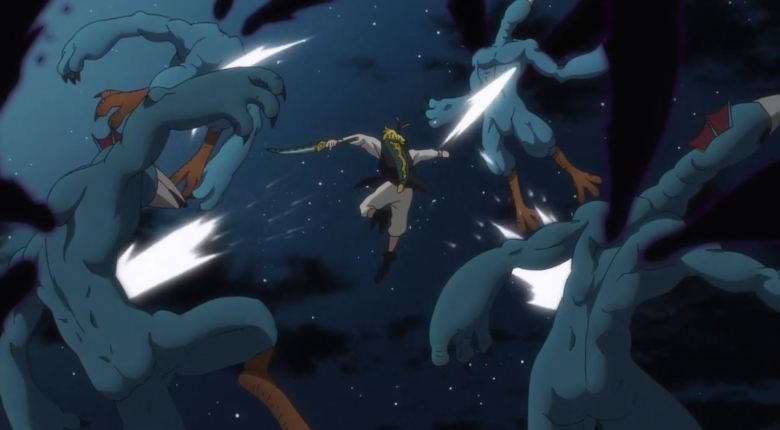 El primer episodio censuró toda la sangre, reduciendo inmensurablemente la inmersión de los espectadores al cubrir la sangre con manchas blancas, un resultado que es ridículo por decir lo menos. El primer episodio de la Temporada 3 de Nanatsu no Taizai fue en parte una especie de recapitulación, presentando algunas horribles escenas de lucha en las que los monstruos grotescos se redujeron a la mitad, pero la luz blanca elimina todo el impacto de las escenas.