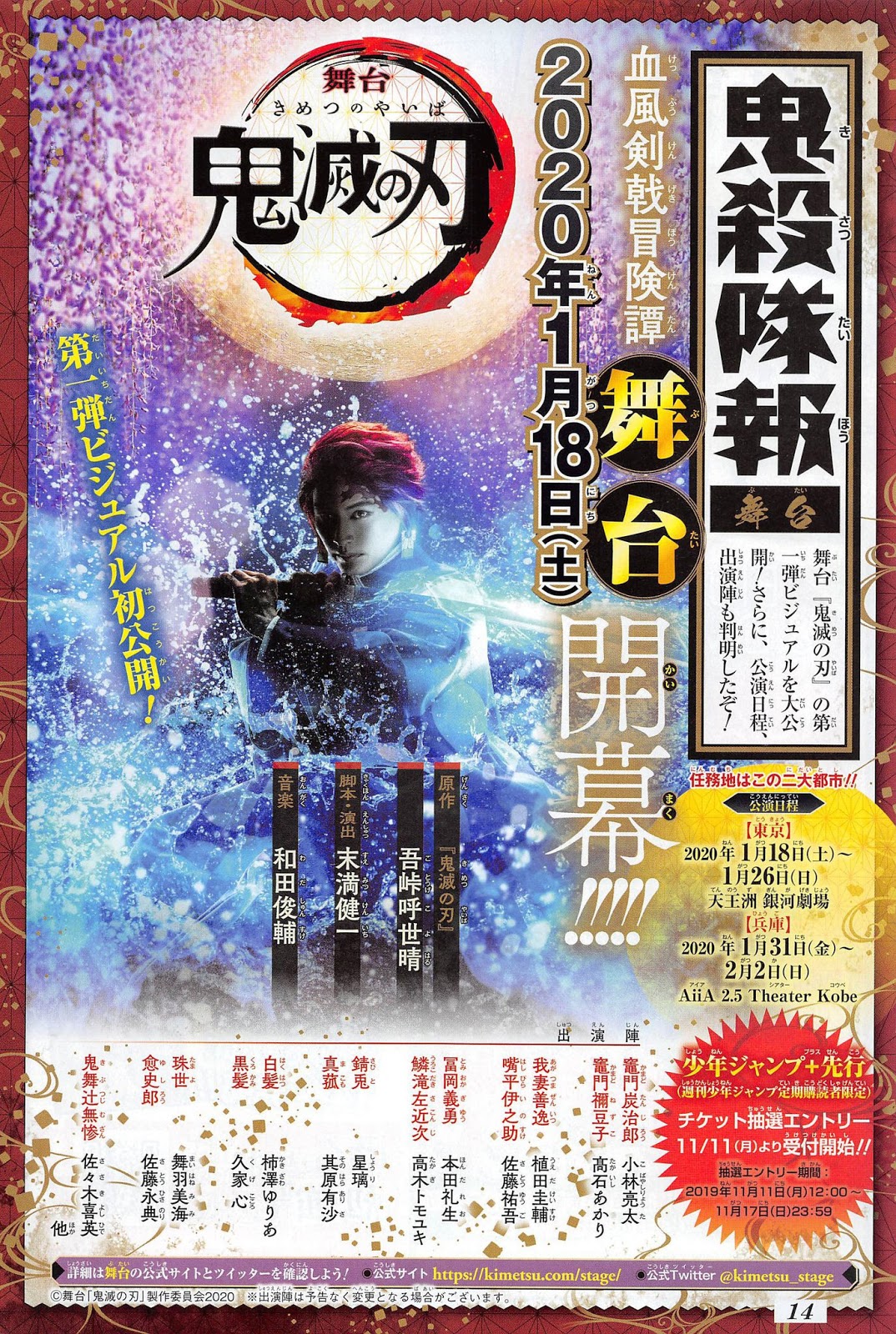 El mes pasado detallamos que el manga Kimetsu no Yaiba de Koyoharu Gotouge iba a ser adaptado para una obra de teatro y hoy se reveló una primera imagen promocional que puedes ver abajo.