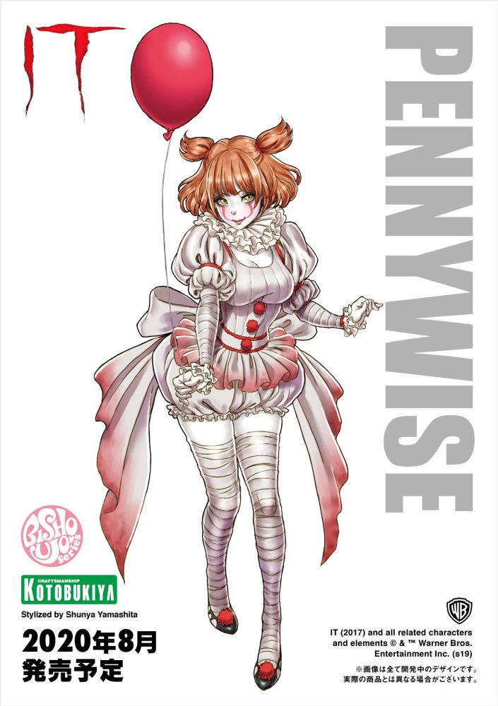 Esta figura de Pennywise es parte de una serie de personajes de terror waifus del ilustrador Yamashita Shunya y lanzada por Kotobukiya, aquí hay algunas de sus obras coleccionables: