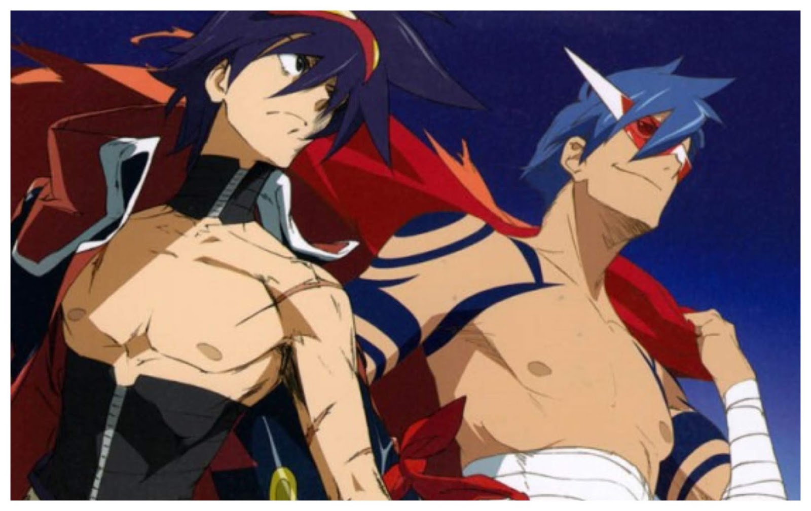 En contraste a ello, la inmensurable capacidad de Simon para ser un verdadero héroe. La destacada e icónica frase de Kamina a Simon finalmente le abre a Simon las puertas para impulsarse más allá de los indispensable y así traspasar un nivel que nunca hubiera imaginado que lograría sin el respaldo de Kamina, y con este último creyendo que Simon es la vía en la que encomienda su confianza para lograr sus hazañas, solo desvela cómo un enlace entre dos hermanos jurados puede manifestarse de gran amanera.