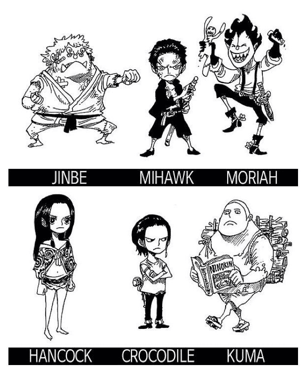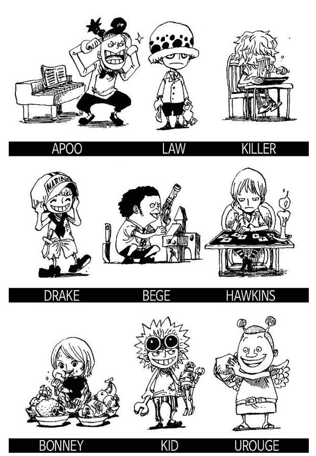 En breve, puedes apreciar como Oda ha ilustrado varios dibujos de personajes de One Piece como niños que dan una mejor idea de cómo ha ido creciendo. One Piece ha viajado en el pasado incontables ocasiones, dándonos una versión más joven de varios integrantes de la tripulación pirata. Monkey D. Luffy ha explorado su infancia varias veces, más recientemente en el especial One Piece: Romance Dawn.