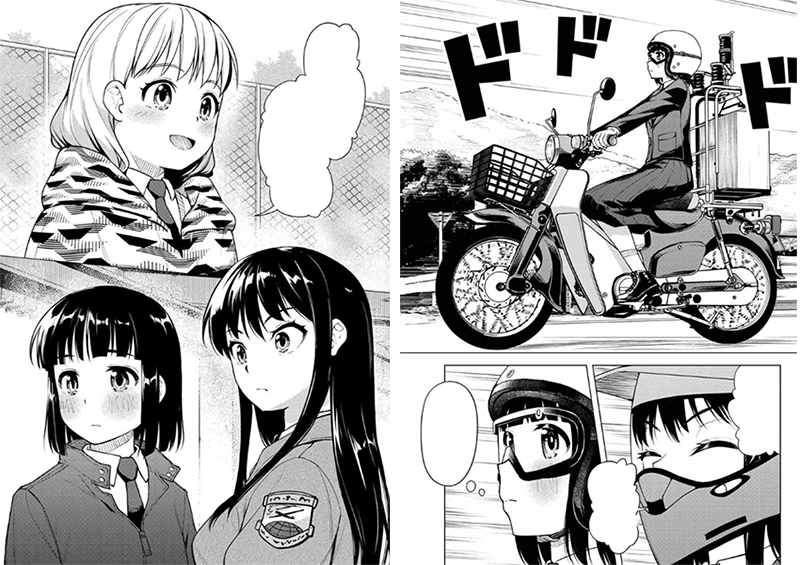 El manga Super Cub de Kanitan (guión) y Tone Koken (dibujos) comenzaron en 2018 en Kadokawa Shoten y hoy en día cuenta con 6 volúmenes vinculados a Japón.