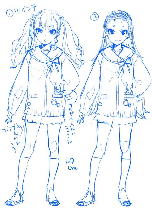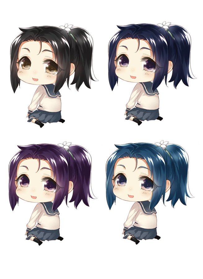 El autor también reveló sobre Hina Hanetachi (Asunaro), su color de cabello, y estas a continuación fueron algunas opciones antes de cambiar a azul de final: