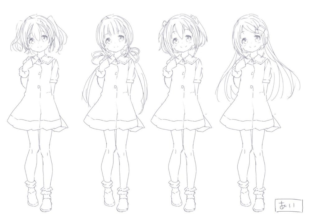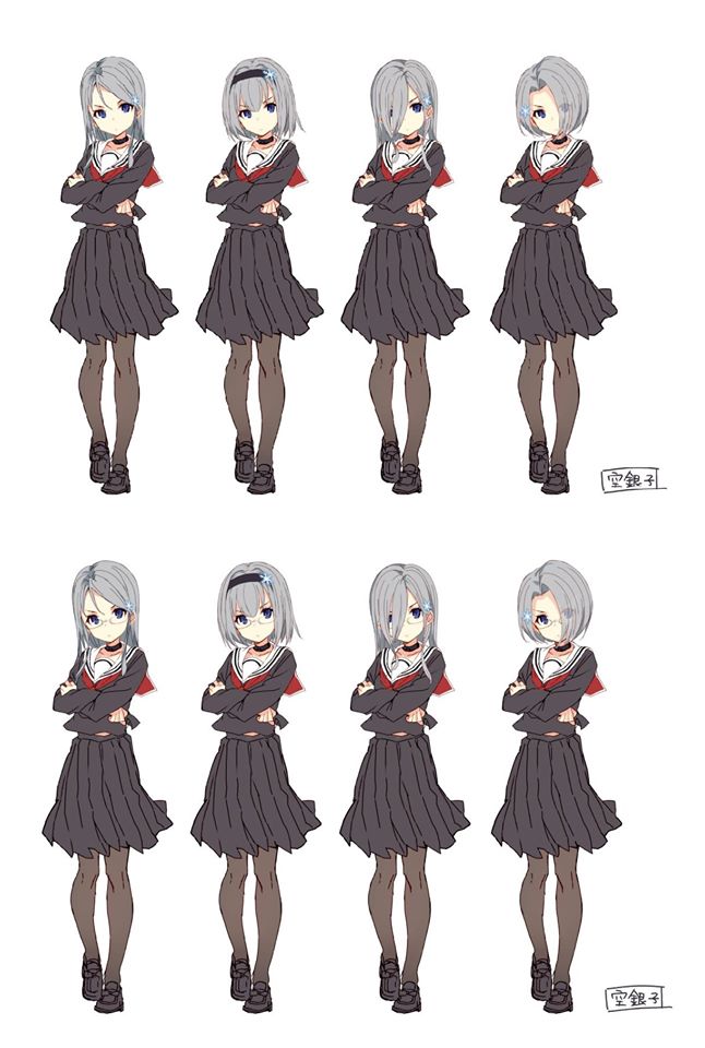 Se suponía que el personaje de Ika Sainokami tenía cabello oscuro y un peinado diferente, pero decidió cambiar, ver sus conceptos iniciales: