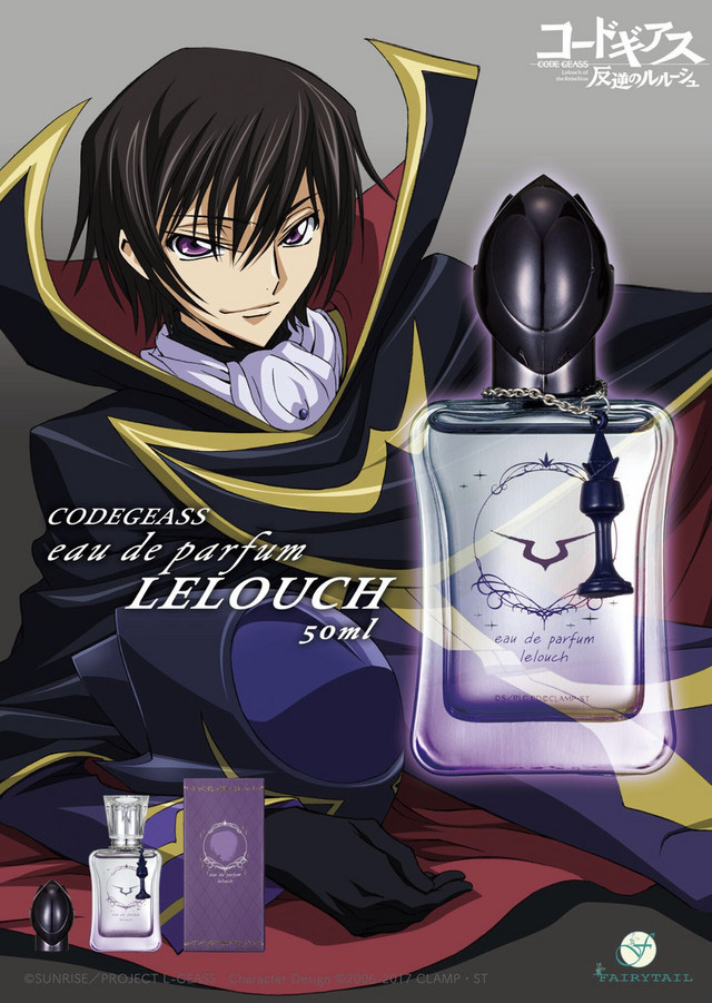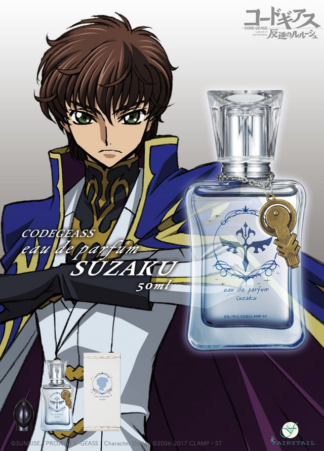 Además, el perfume Lelouch es fuerte y floral con varias sustancia de fresia. Entretanto, el de Suzaku posee notas cítricas afrutado con esencia a durazno blanco. Para cada frasco de igual manera viene acompañado de una caja de colección con una silueta Lelouch o Suzaku. Dichos aromatizantes llegan en frascos de 5 ml y se envían por 2.800 yenes 24 euro cada una.
