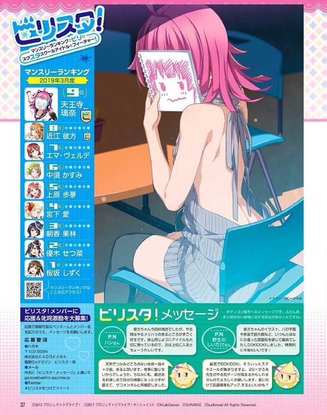 El Nijigasaki High School Idol Club, que introdujo nuevas chicas, incluida Rina Tennoji, que es una chica de cabello rosado que no mostró su rostro: