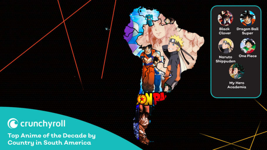 En América del sur, solo Brasil eligió a Naruto como su favorito, y en el resto de los países sudamericanos fue Dragon Ball Super, con excepción de Uruguay, en donde My Hero Academia es el que predomina la región.