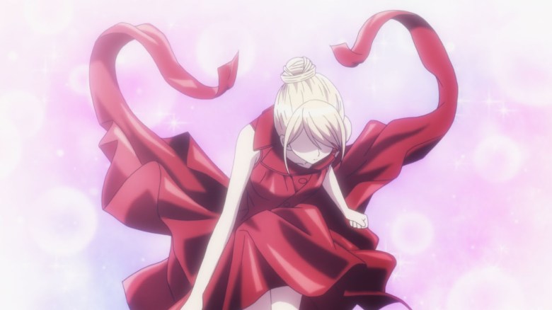 Lo cual que hizo el vestido flojo para cuando la chica accidentalmente llegara a caer el listón se soltara desplegando las las cintas como una bella mariposa se tratase en simulación. Finalmente, el espectáculo de moda logro continuar con éxito y así al final Tsumura recibió la mitada de credito del trabajo de parte del gran diseñador de moda, Hazime.