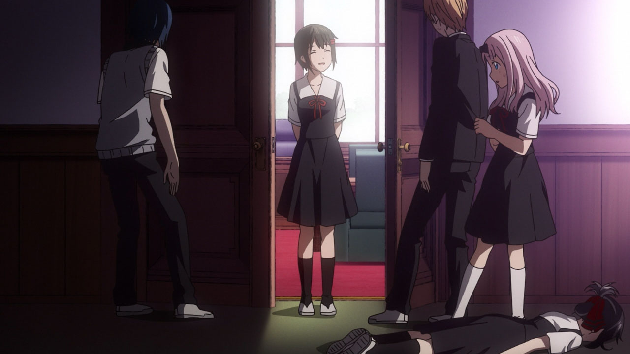 De retorno con una de las divertidas series del año, Kaguya-sama: Love is War nos deleita con un imprescindible pero carismático escenarios alrededor de la sirvienta de Kaguya, Hayasaka Ai. La cual bajo órdenes directas de su ama, ejecuta una serie de acciones en función para que la vicepresidente, Kaguya de un paso en adelante sobre su rival. Sin embargo, un simple improvisto en los planes de Kaguya hace que Hayasaka tome acciones distintas, dada la extrema inocencia de su ama. En tal caso, que una nueva misión es dada y con ello Hayasaka no puede dejar entrar a nadie a la oficina del consejo estudiantil.
