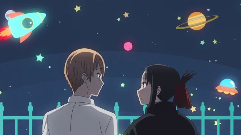 Por lo que, sorpresivamente empieza todo fácil y muy natural yendo la corriente de las coas a favor de Kaguya. No obstante, no tenía previsto la extrema inocencia de Shirogane cuando se trata temas de astronomía, por lo que unirse ella a lo que es la conversación de Miyuki sobre el mismo tema hace que el plan que Kaguya formuló se le vaya de las manos. Con la gran confianza de Shirogane en cada palabra mientras sujeta un poco fuerte a Kaguya para demostrarle más detalladamente sus respuestas astronómicas y la belleza de la misma naturaleza, hace que Kaguya se rinda avergonzada ante sus acciones imprevistas los cuales son bastante un tanto impropias de Shirogane, pero a la vez le agrega ciertos puntos encantadores.