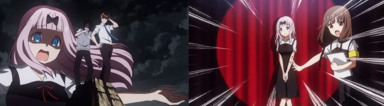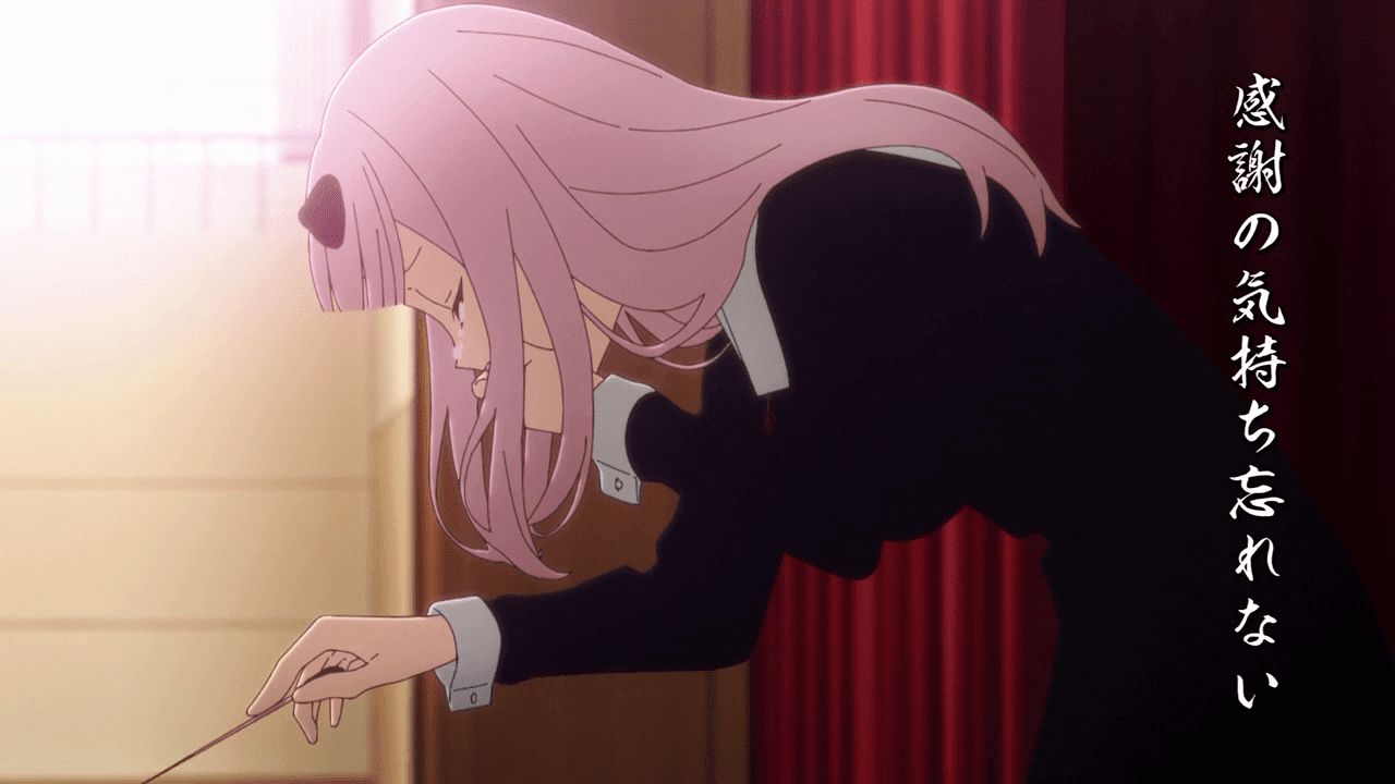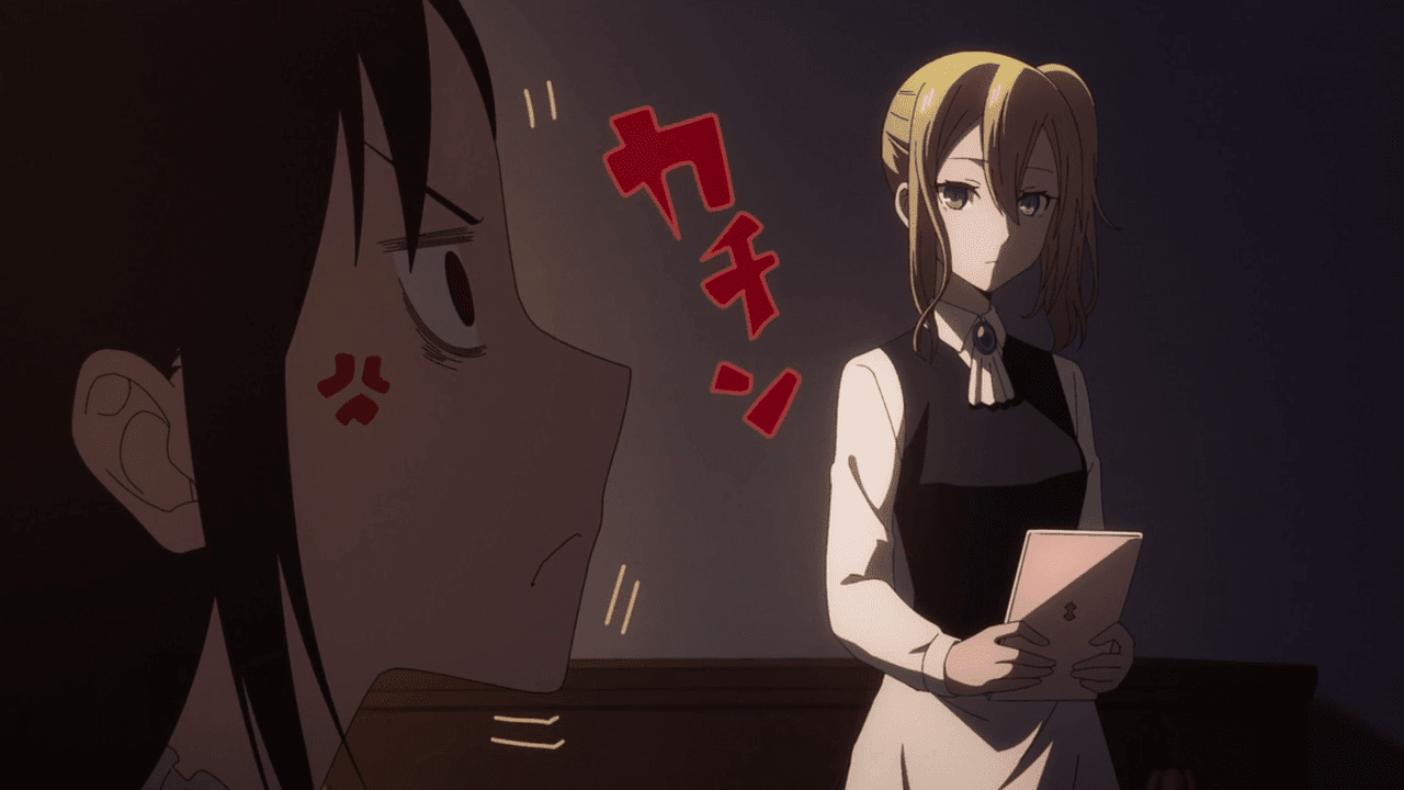 A pesar de que a la vez desea hacer de Chika la presidente. Kaguya avanza con sus tácticas de lavado de cerebro de forma sutil a través de amenazas disfrazadas. Sin embargo, en cuanto Miko hace referencia entre Shirogane y Kaguya, esta última se distrae con el pensamiento de amor hacia su superior, »Shirogane».