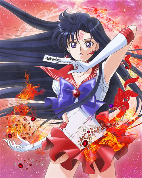 Las Sailor Senshi de Sailor Moon usan leotardos con cuello de marinero y faldas sobre ellos. En este caso, Rei Hino una de las waifus mas preferidas del anime, dada su encantadora personalidad fuerte. Los leotardos son blancos y muchos espectadores pensaron que estaban viendo Panty Shots cada vez que el anime clásico estilo retro de los 90 evitaba el tema de la falda mágica. Lo que se puede apreciar en las transformaciones como el encaje de ello va uniendo las misma falda con el leotardo estándar de guerreras mágicas.