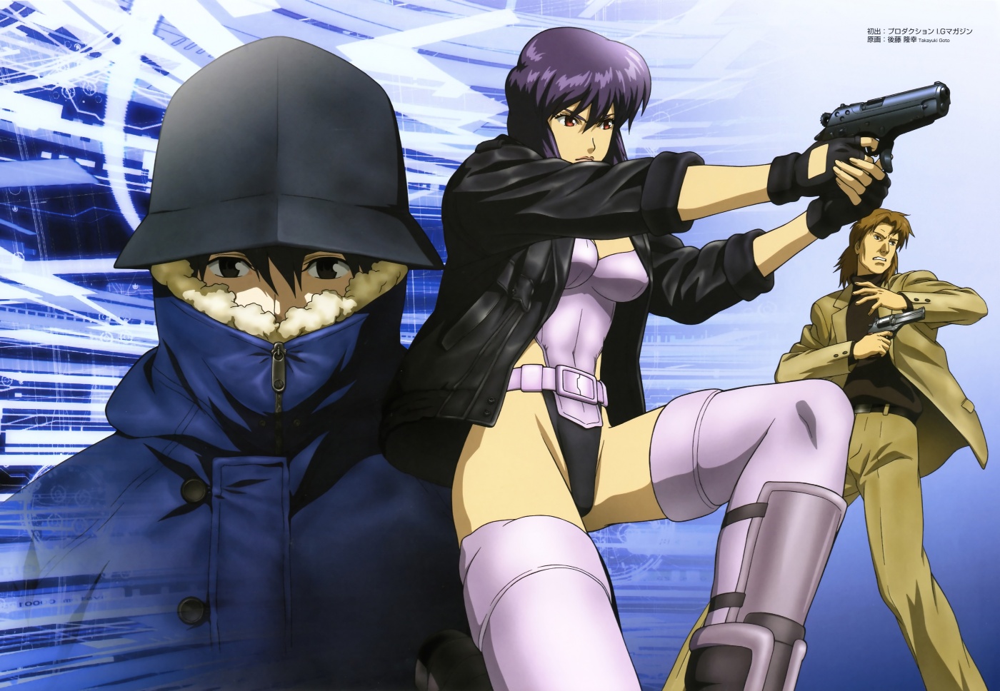 La Mayor Motoko Kusanagi es el protagonista principal de la serie »Ghost in the Shell‘‘, ella porta un leotardo con una chaqueta tipo táctica encima y medias muy largas. Posteriormente, se pone los pantalones y por alguna extraña razón, el consenso de los fans cree que ponerse los pantalones hace que cierto aspecto mejore su carácter. Además, ella es una cyborg empleada como líder de escuadrón de la Sección 9 de Seguridad Pública, una división ficticia de la verdadera Comisión Nacional de Seguridad Pública de Japón.