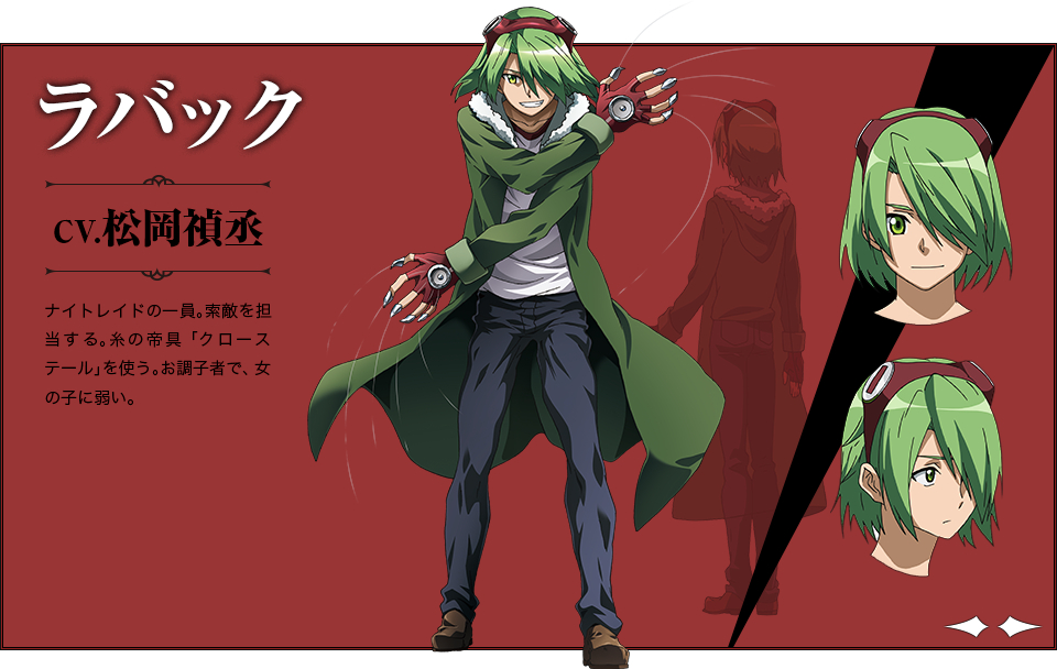 Lubbock es miembro del grupo de asesinos Night Raid. A menudo se le muestra como un pervertido, incluso tratando de espiar a Leone mientras se baña, generalmente estos intentos terminan en fracaso. En la ciudad, trabaja encubierto como dueño de una librería.