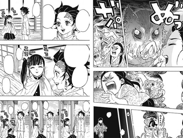 Diseño de personajes de Inosuke Hashibira y Zenitsu Agatsuma: