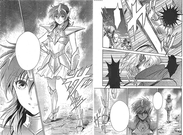 El manga Saint Seiya Saintia sho de Chimaki Kuori inició en 2013 en Akita Shoten y hasta ahora suma un total de 11 volúmenes enlazados a Japón. Accesible en la editorial Kurokawa.