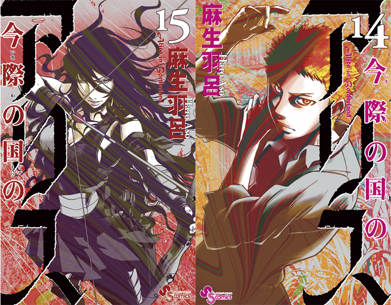 El manga Alice in Borderland (Imawa no Kuni no Alice) de Aso Haro iniciaron en 2010 publicado por Shogakukan. Y cuenta con un total de 18 volúmenes encuadernados en Japón. (Disponible en Ediciones Delcourt) Una escisión titulada Imawa no Michi no Alice de Aso Haro (guión) y Takayoshi Kuroda (dibujos) comenzó en 2015 y tiene un total de 8 volúmenes vinculados.