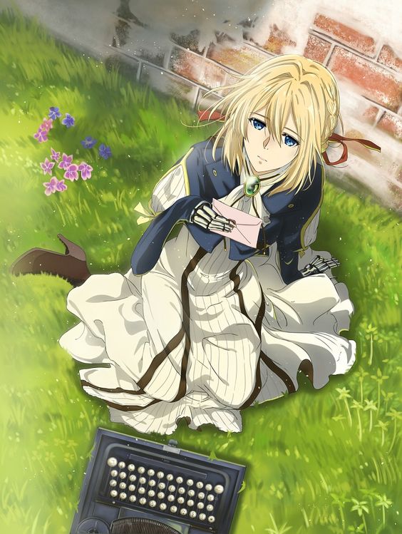 Violet Evergarden es una adolescente que al principio no comprende ni asemeja lo que son las emociones, básicamente una chica inexpresiva, pero que acumula una serie de heridas del pasado que no tenia idea de que eran, pero que no le afectaba en ese momento de manera que le entristeciera o la enojara.