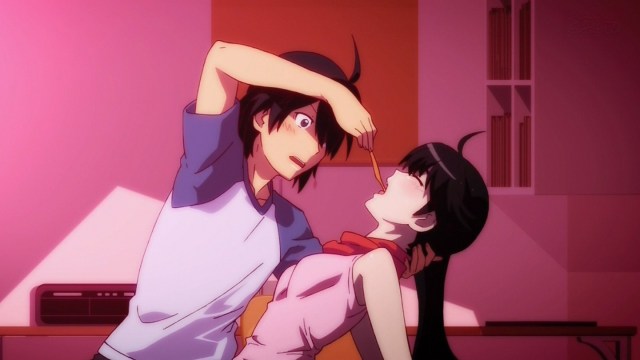 Una de las escenas más peculiares que me impactó en cuanto a orgasmo, no hace nada más que su aparición uno de los mejores animes ecchi en cuanto a harem se refiere, donde el protagonista Tsukihi Araragi deleita a todo aquel seguidor de todas sus series con un espectacular escenario de sensualidad humorística a través de un lado de dientes que le realiza su hermana menor Karen.