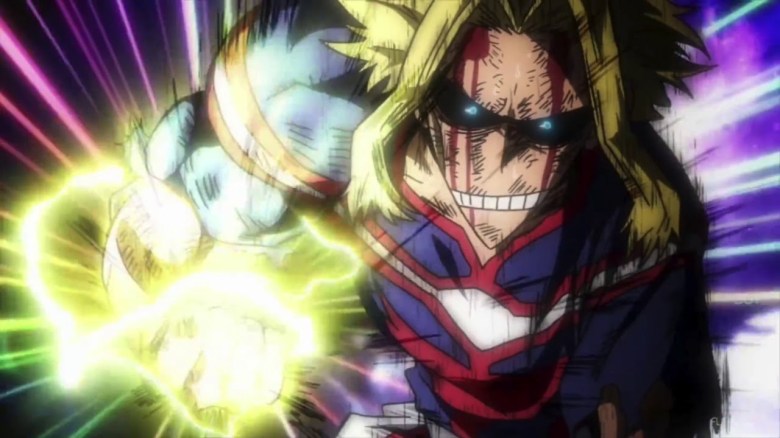 Pues en esta versión se puede apreciar uno de los momentos sumamente icónicos del manga y del anime hasta hoy en día, la poderosa técnica United States of Smash de All Might. En este ataque se ejerce lo último de la voluntad de fuego del One For All, abstrayendo todo la energía de su Quirk en tan solo un punto de enfoque; »su puño», para finalmente terminar con un solo golpe. En pocas palabras su técnica de contraataque más poderosa. El jefe de la Liga de villanos, »All For One», recibe el impacto.
