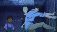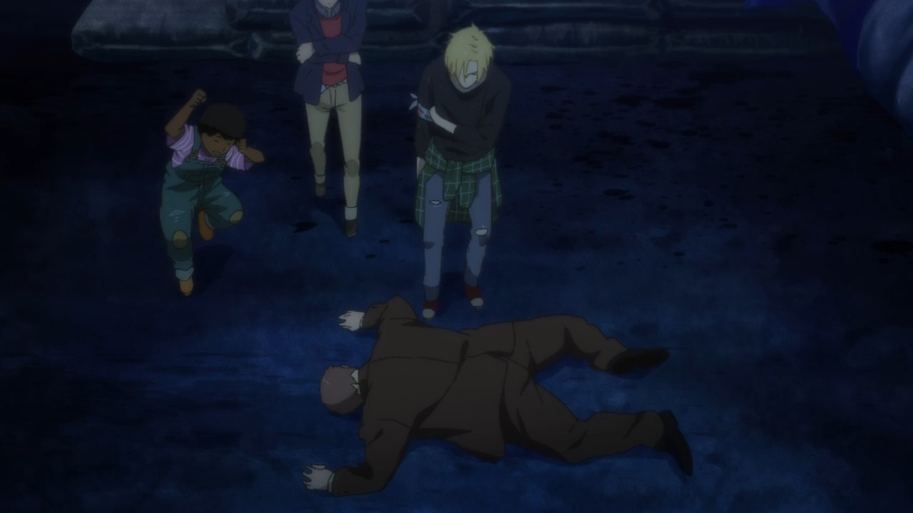 Sin embargo Eiji se le ocurre una gran idea, y desprende un tubo viejo de la pared y con ello saltar el muro como si fuese atleta olímpico en dicha temática. Ash y Skip quedan asombrados ante ello, pero los adversarios llegan rodeandolos y entre ellos Marvin esta más furiosos, Arthur le regaña por ser pervertido haciéndole saber que eso ocurre por ello, mientras tanto Eiji le pide un celular a una señora la cual se espanta al verlo herido con apariencia de maleante, Eiji intenta llamar a la policía pero queda inconsciente, para su suerte la policía llegan par de segundos después por la advertencia de la señora de antes. Más adelante el compañero de Eiji lo visita en el hospital y la policía logra averiguar la ubicación de los atacantes.