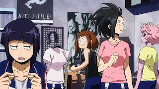 Todo esto debido a que si Mineta hubiese dado su opinión nadie le creería, por lo que utiliza sus compañeros quebrantados para cometer sus actos. Luego el cuarto de Kirishima es el siguiente el cual está lleno de objetos de pesca, por lo que Uraraka se impresiona, mientras que el de Shoji es demasiado aburrido son casi nada, literalmente un sujeto minimalista, y el aposento de Cero es bastante al estilo asiático y finalmente llega el turno de Todorki lo cual inquieta a todas la chicas al ser el más capaz, atractivo y algo emocionante por lo que al entrar tanto las chica como los chicos quedan sorprendidos con el estilo japonés de su cuarto, muy tradicional y por último el aposento de Sato el cual es normal.
