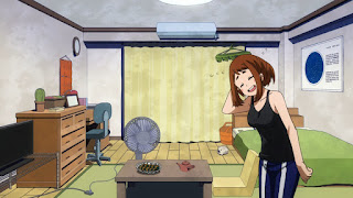 Luego es el turno de Ashido el cual es bastante atractivo con un estilo atigrado, el cuarto de Uraraka es común y sencillo cuando algunos chicos se sienten incómodos y sucios al observar tantos aposentos femeninos, llegando el turno de Asui, sin embargo no se pudo observar su aposento debido a que se sentía mal, por lo que deciden dejarlo pasar para luego y finalmente es el turno de Yaoyorozu contemplando toda la habitación de una niña adinerada con una gran y hermosa cama que ocupa casi todo el lugar y, en conclusión como resultado de los votos femeninos las chicas en elegir el mejor aposento de chico es; la habitación de »Rikido Sato», por la gran sorpresa de tener un hermoso pasatiempo de hornear una gran deliciosa torta que dejó encantadas a las chicas.