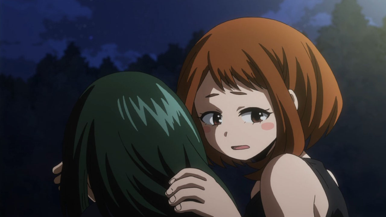 Lo cual Mineta y Kaminari una vez más se vuelven celosos de él, luego de todo ello Todoroki intenta ir a dormir, sin embargo Uraraka le cuenta a él junto con Kirishima, Lida, Yaoyorozu y Izuku de que TsuyuAsui quiere hablarles, por lo que Asui les hace saber sobre el dolor que siente por haberlos ofendidos con anterioridad en el hospital, por lo que pensaba que los detenían de estar con ella al no divertirse con ellos, por lo que Asui llora y sus compañeros tratan de reconfortarla y se disculpan también con ella, tratando de ello volver a sus vidas de héroes y ser mejores con ello.