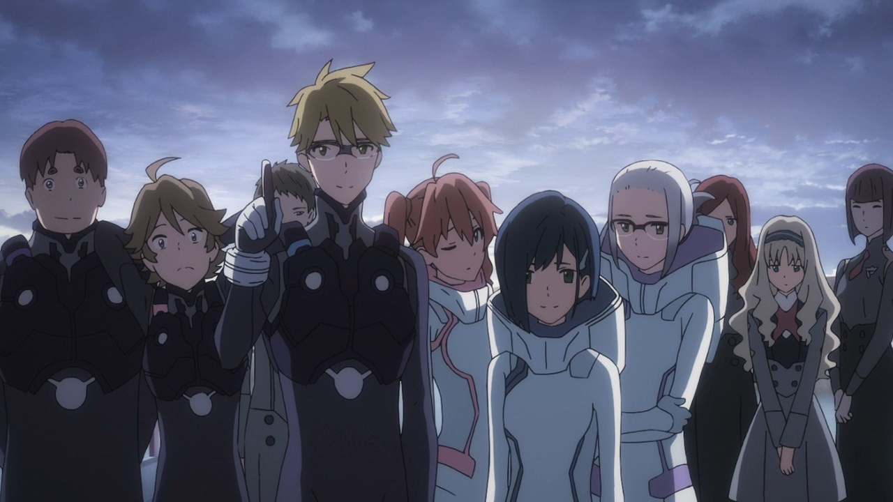 Los cuales congelaron a Naomi al igual que muchos otros. En la mañana temprano Hiro a punto de partir encuentra a sus amigos quienes decidieron acompañarle a pesar de que les cueste la vida, Goro y los demás dando su opinión en apoyo a Hiro al igual que los Nine quienes llegan a respaldar y Ichigo le hace saber de qué todos son uno mientras que Goro le cuenta a Hiro que lo apoyó y sabe perfectamente que no cambiará el ideal, de su amigo de igual forma Hiro no cambiará la de ellos, por lo que todos a excepción de Mitsuru y Kokoro se preparan para partir al espacio por la órbita de Marte en pelear contra los VIRM y rescatar a Zero Two.
