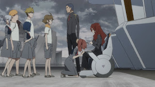 Todos se asombran en especial Mitsuru quien queda petrificado del asombro al no saber qué hacer ante ellos mientras Kokoro esta desorientada de la misma manera, al atardecer Mitsuru le pregunta a Hiro que debe de hacer pero ese último no tiene idea, cuando se retira a ver a Zero Two pero no está en su lugar encontrándola fuera de su aposento mirando hacia el cielo, Hiro la regresa a su cámara. Luego Goro llega alertando a sus compañeros para la sorpresa de que las cosechas se fueron a perder debido a que la tierra no tiene minerales para subsistir vida en las cosechas. En el cielo se ve la nave donde anteriormente el quipo 13 partió, por lo que deciden ir tras ella encontrando a Hachi y la verdadera Nana salir de allí.