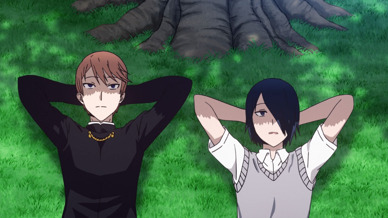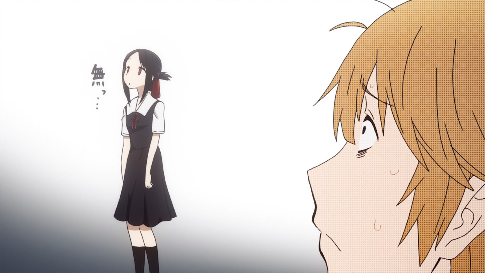 Entramos en escena con un ambiente súper denso. En el que Shirogane y Shinomiya Kuguya se baten un a intensiva serie de discusiones por querer que el otro acepte un trozo de pastel. Es entonces, que tras un cambio de escenario, una retrospección no muestra como ha sucedido todo esto. A través del director de la escuela a ofrecido pastel. Sin embargo, solo hay dos bizcochos y ellos son tres. Por lo que Shirogane le ofrece uno al tesorero Ishigami. Mientras que el restante es ofrecido a Kaguya la cual no acepta. Dado que quiere dárselo a Shirogane. De igual forma, no aceptan.